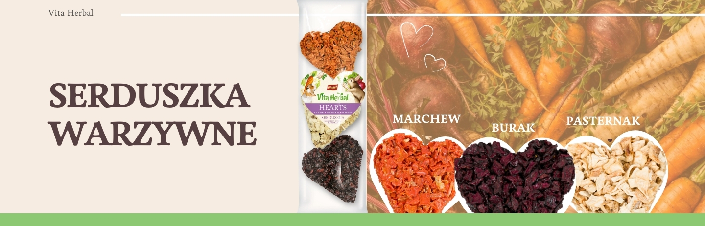 Zdrowa dieta ma ogromne znaczenie dla kondycji i dobrego samopoczucia małych zwierząt. Dlatego powstały Vita Herbal Serduszka Warzywne wyjątkowy przysmak dla gryzoni i królików, który łączy naturalne składniki, wartości odżywcze i atrakcyjną formę. Ten warzywny mix to idealne urozmaicenie codziennego jadłospisu pupila, które dostarczą mu nie tylko smaku, ale także cennych składników odżywczych.